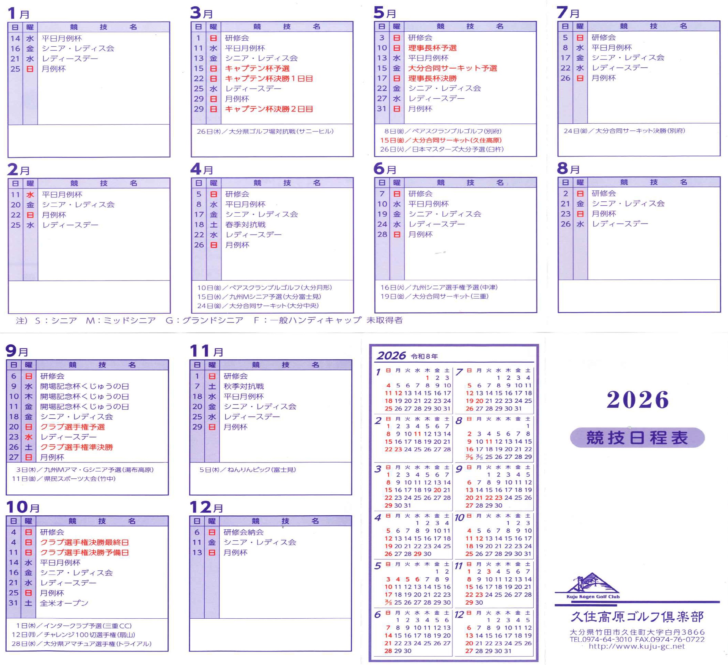 2026年久住高原ゴルフ倶楽部 競技日程※pdf)